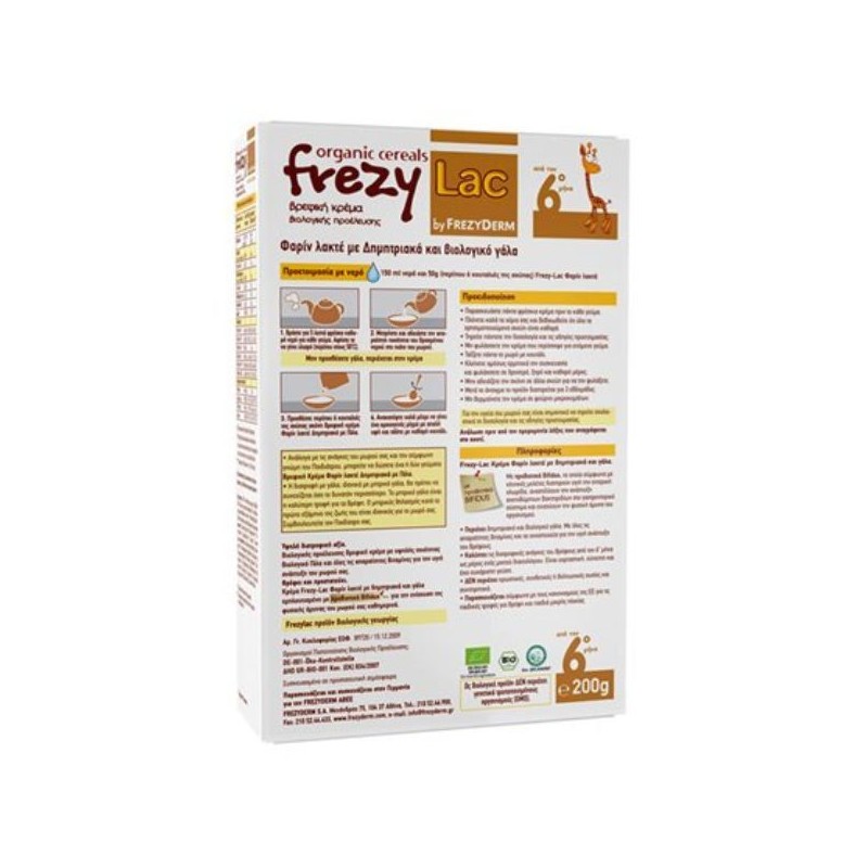 Frezylac Organic Cereal Farine Lactee is a baby cream with organic cereal, organic milk and Bifidobacteria (B. breve, B. bifidum, B. infantis, B. longum).