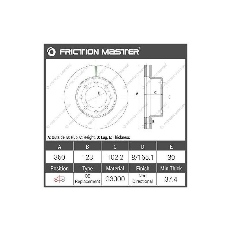 Friction Master R1412 Front Brake Disc Rotors For Dodge Ram 2500 2009-2010 Ram 3500 2009-2010 Ram 1500 2012 (w/ 8 Lug Wheels) 2500 2011-2018 3500 2011-2018