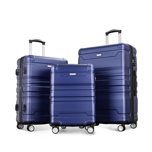 FridayParts Luggage Sets New Model Expandable ABS Hardshell 3pcs, Hardside Lightweight Durable Suitcase sets Spinner Wheels Suitcase with TSA Lock 20"24"28"(Navy)