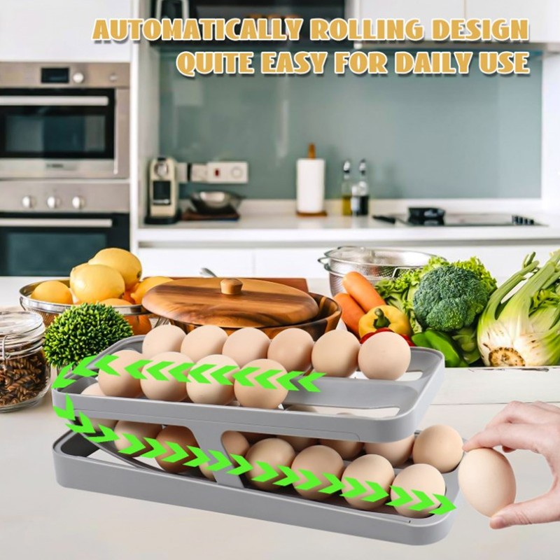 Fridge Egg Holder Egg Dispenser Anto Rolling 2 Tier 2 Row Easy Access Dishwas...