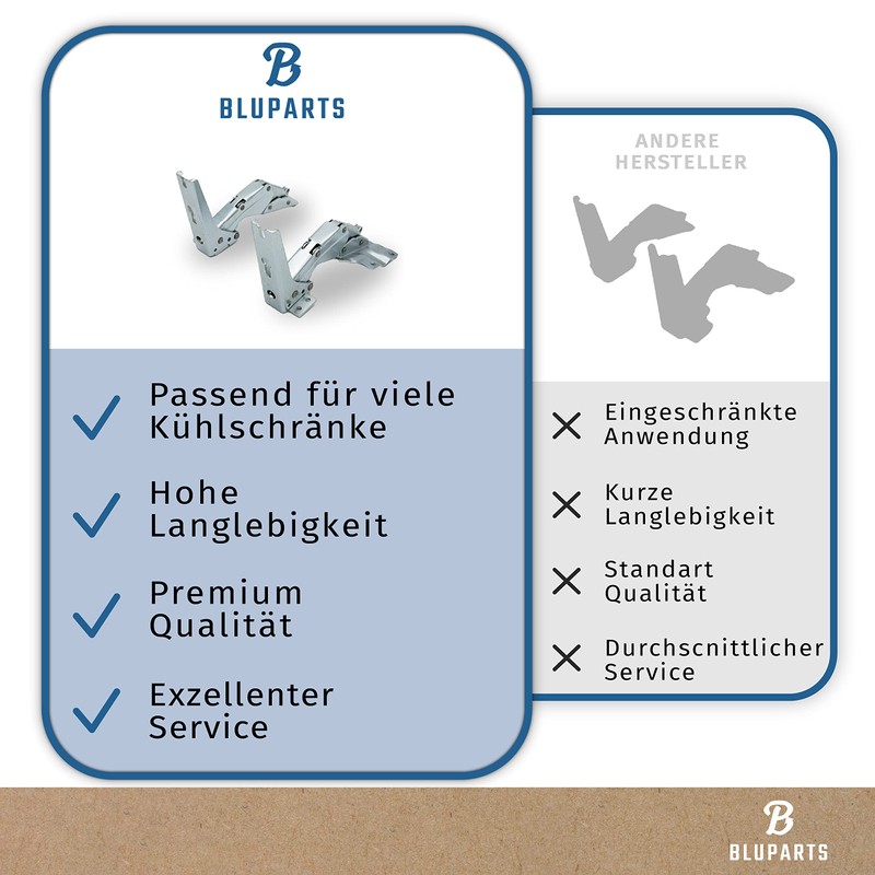 • Our hinges are durable and robust. Compatible with individual devices from Bosch, Siemens, Neff, Küppersbusch, AEG, Miele, Bauknecht, Balay, Constructa, Junker&Ruh, Quelle, Vorwerk and much more.