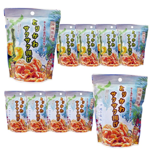 Fried Torika Crispy 0.9 oz (25 g) x 10 Pack Set (5 x Shikuwasa Flavor, 5 Okinawan Salty)