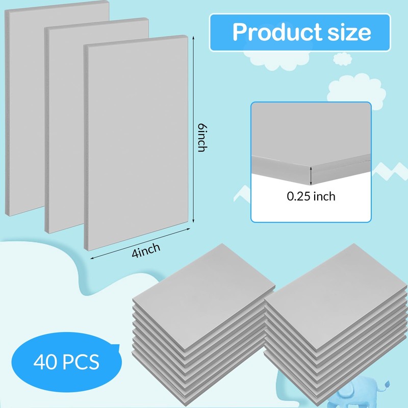 Frienda 40 Pcs 4"x6" Rubber Carving Blocks Linoleum Block Stamp Making Kit Soft Rubber Carved Brick for Stamp Maker Printmaking Supplies Craft Project(Gray)