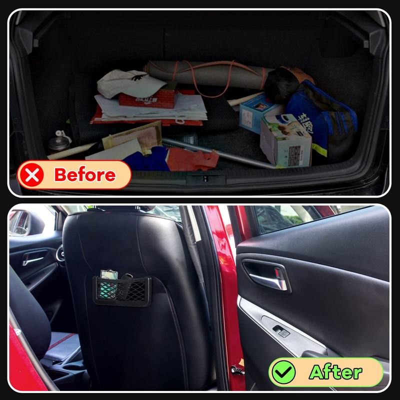 - Space Saving: these car seat mesh pockets are very practical for you, you can use them to organize many things in your car, which can save more spaces for you, especially when traveling by car, these storage networks can help organize or store food, drinks, tools, emergency tools, vehicle storage accessories, etc