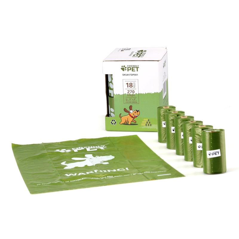 Friendly Pet Dog Poop Bags, 270 Count, 18 Rolls, Leak Proof and Extra Thick