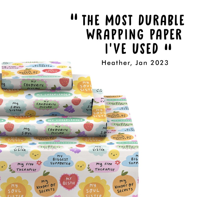 Friends Wrapping Paper - 6 Sheets Of Birthday Gift Wrap For Best Friend, Bestie, BFF, Colleague - White Wrapping Paper For Her - Friendship - Recyclable - By Central 23