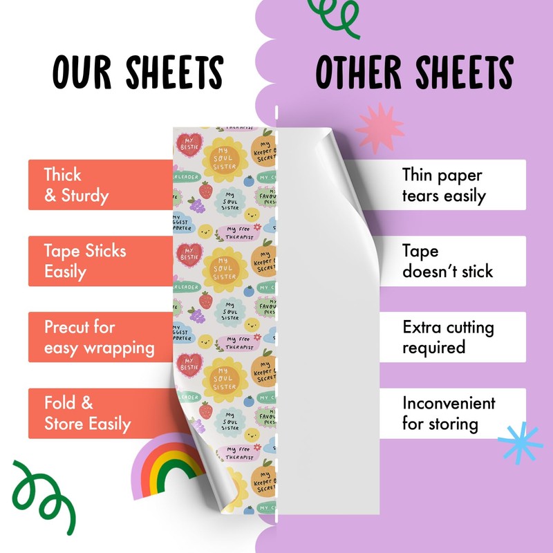 - 🎁 6 GIFT WRAP SHEETS - Large wrapping paper sheets, this set includes 6 folded sheets of 70 x 50cm paper - perfect for birthday presents for friends, scrapbooking or for decorating!