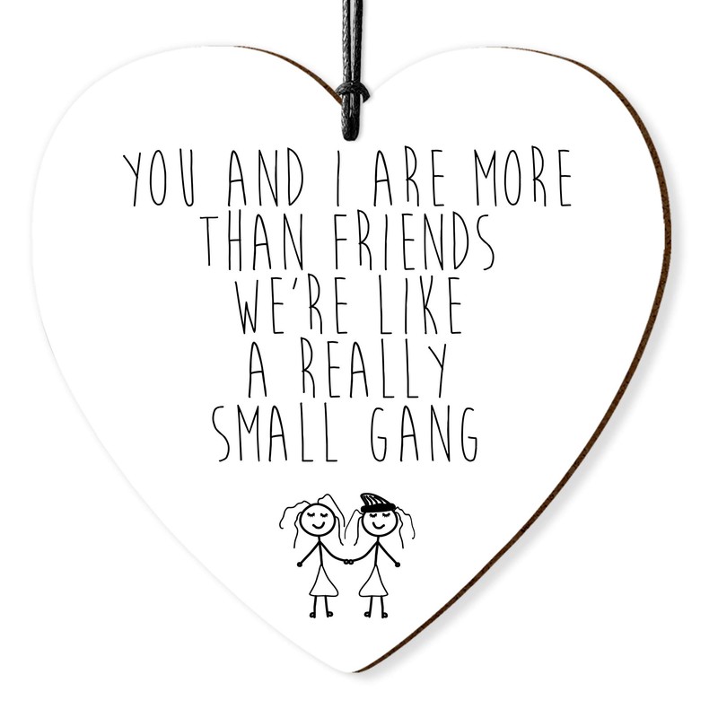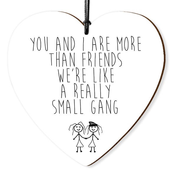 Friendship Gift Heart with Message You and I are More than Friends We're Like a Really Small Gang Wooden Sign with Meaningful Inspirational Quote
