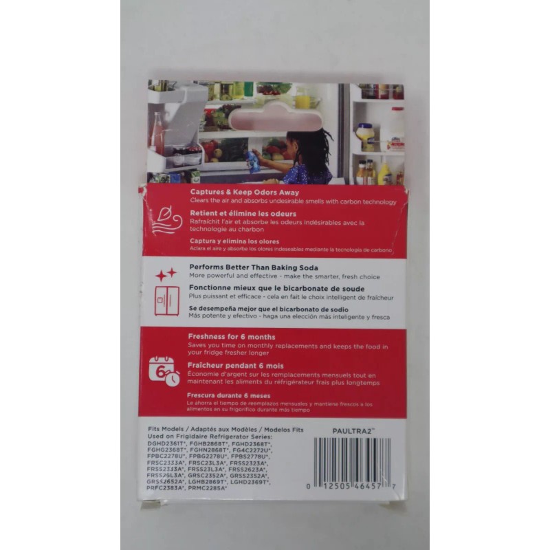 1 Pack PAULTRA2 PureAir Ultra II Air Filter is a compatible air filter designed for Frigidaire refrigerators. Made of carbon fiber material, it features absorption cooling and a carbon filter for effective air purification. With dimensions of 1-5 inches in height, depth, and width, this filter is designed for built-in/integrated installation. The unit is in a matte white finish and is suitable for Frigidaire refrigerator models. Made in the USA.