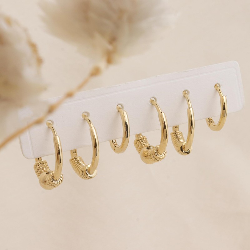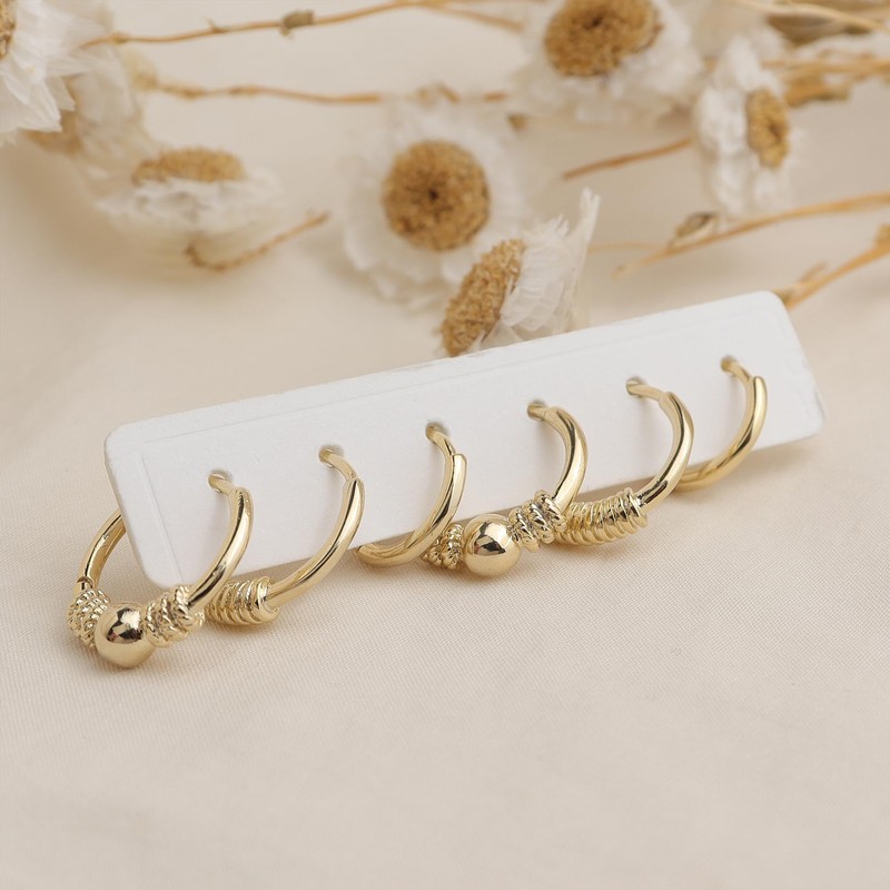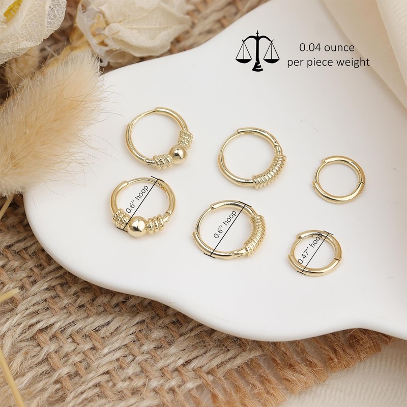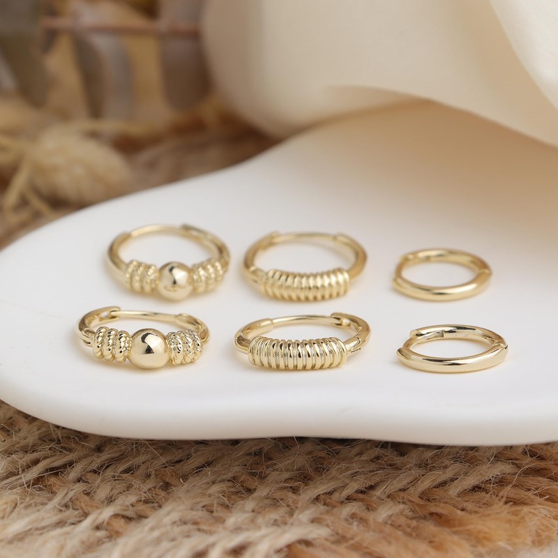 - Cute dainty small hoop earrings set of six tiny huggies, embellished with gold balls. Highly polished gold finish embodies the simplicity of modern sophistication, perfect for everyday simple luxury.