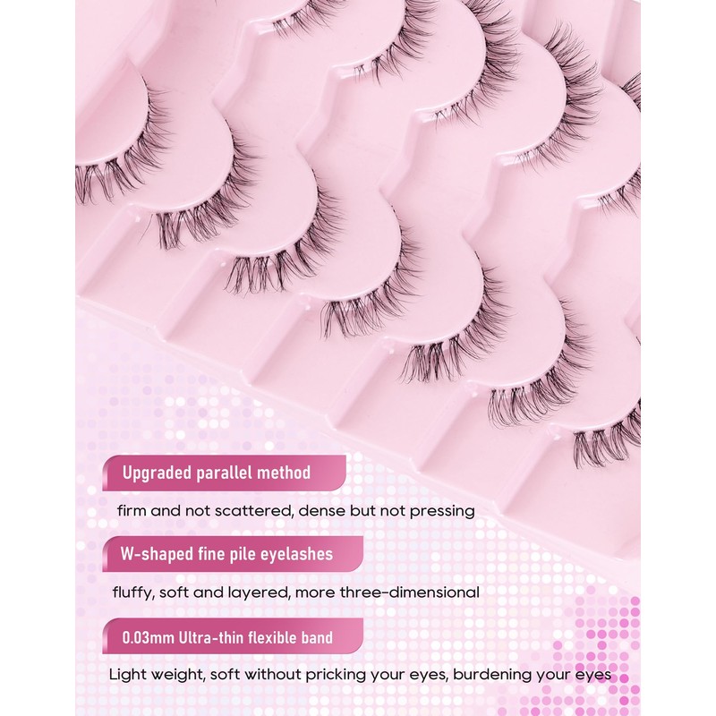 Frihappy Eyelashes Natural False Eyelashes Wispy Eyelashes Natural Look Eye Lashes Wispy Fake Lashes Clear Band Lashes FRH-21