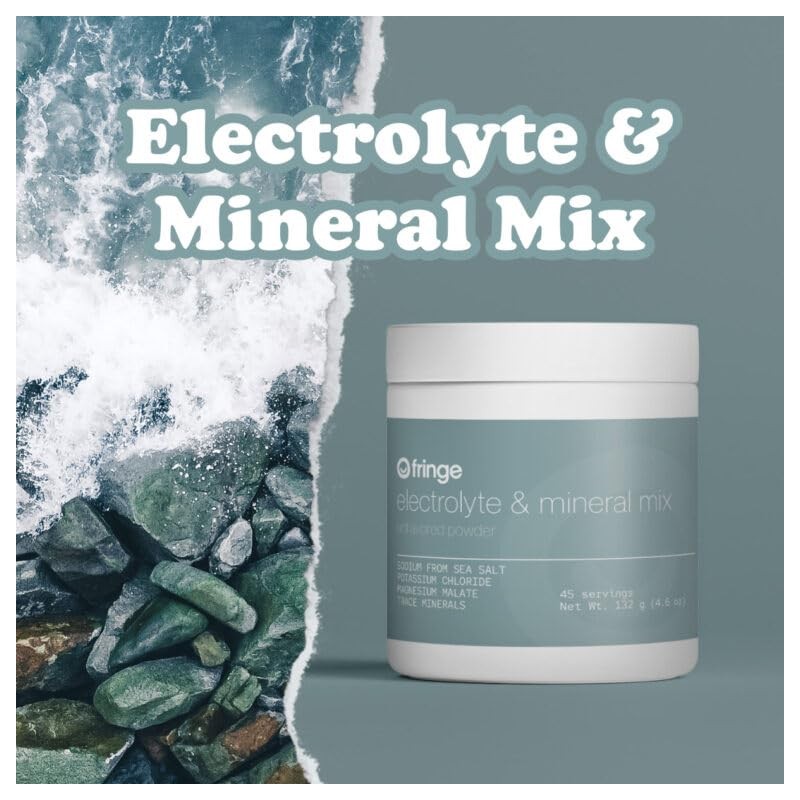 Fringe Electrolyte and Mineral Mix, Pure Ocean Sea Salt for Rehydration, Potassium Chloride, Magnesium Malate for Muscle Tension, Trace Minerals for Essentials, Unflavored, 30 Servings