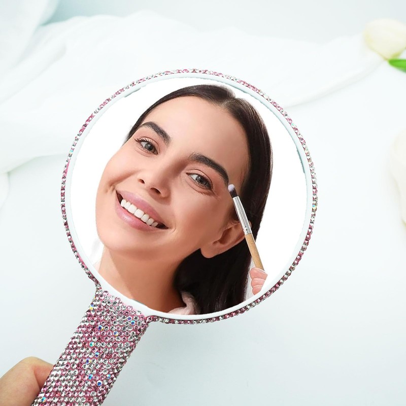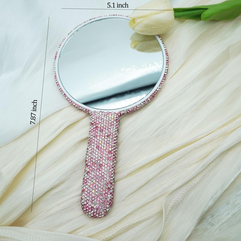 - Piecesing Included: 1 Pieces Sparkling Rhinestone Round Shaped Handheld Mirror in Pink