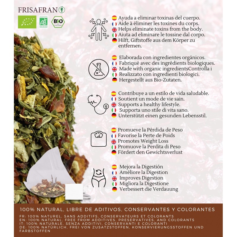 FRISAFRAN - Ecological Detox Cleaning Infusion in Pyramids | Digestive | Anti-Inflammation - 60Uds