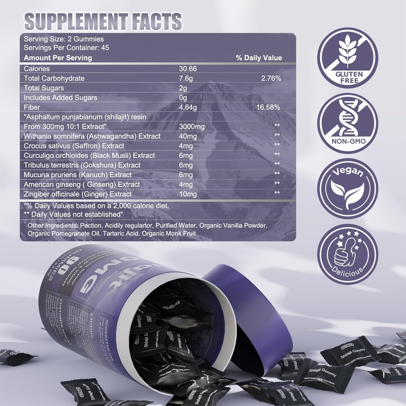 - Innovative and Delicious: These pure Himalayan shilajit gummies for men retain their original nutrients while masking the traditional tartness of shilajit resin, creating a delightful treat for your wellness routine.