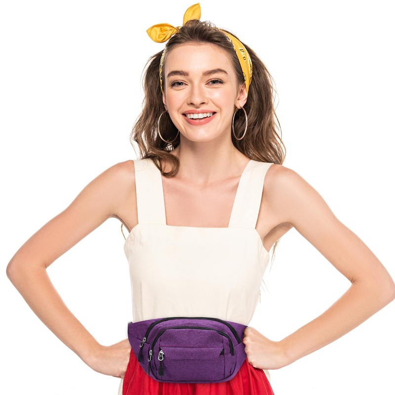 Specification:Color: black, purpleQuantity: 2 pcsMaterial: oxfordFeatures:1. The fanny pack fashionable waist bag is a stylish and practical accessory that is good for women, men and teens. It comes in a classic black color and features a multi-compartment design with zipper pockets that make it easy to store and access your important items.2. The waist bag is a versatile and stylish accessory for both men and women. Made from lightweight and waterproof Oxford fabric, this fanny pack is designed to withstand the elements while keeping your belongings safe. The durable polyester liner adds an extra layer of protection to ensure that your items stay dry and secure.3. The large capacity fanny pack features an adjustable belt that can be customized according to your specific needs, making it suitable for use as a chest bag, hip pouch, shoulder bag, or crossedbody bag.4. Whether you're travelling or engaging in outdoor activities, this waist bag provides the convenience and functionality you need to stay organized and hands-free.Package include:2 pcs bumbags