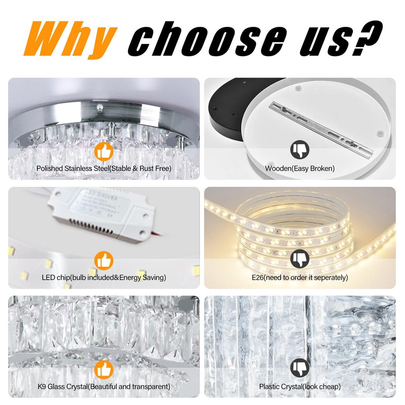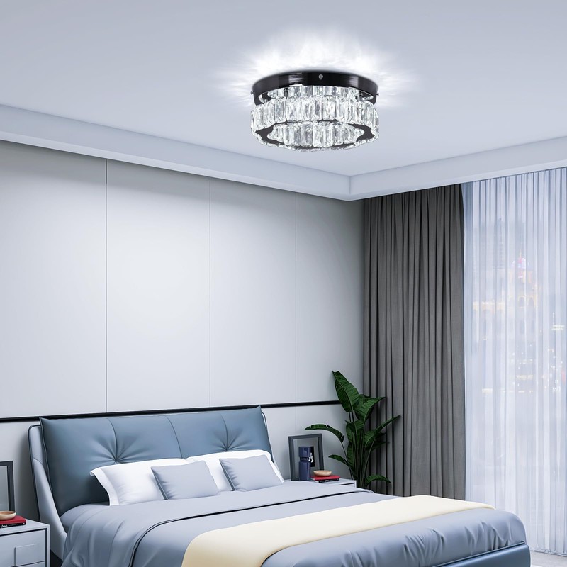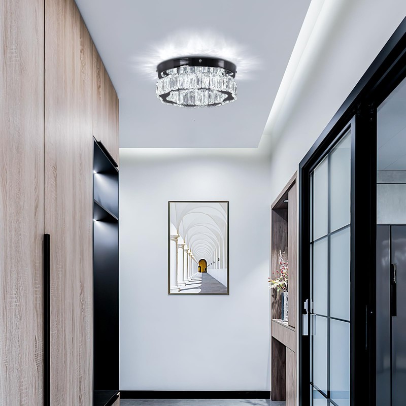 - ELEGANT ILLUMINATION: This modern crystal ceiling light features a flush mount chandelier design with LED bulbs that cast sparkling light throughout hallways, kitchens, closet,bedrooms and more.