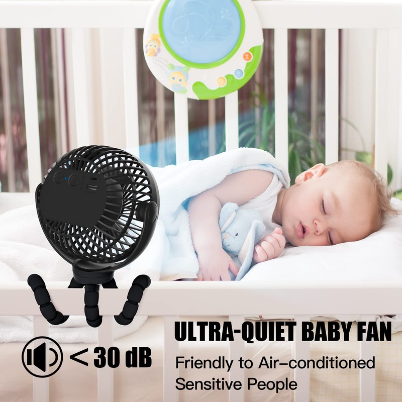 FRIZCOL Portable Stroller Fan, Use As Power Bank, 55H 12000mAh Battery Operated Fan Flexible Tripod Baby Car Seat Fan, Personal Mini Handheld/Desk/Small Clip On Fans For Stroller, Carseat (Black)