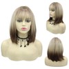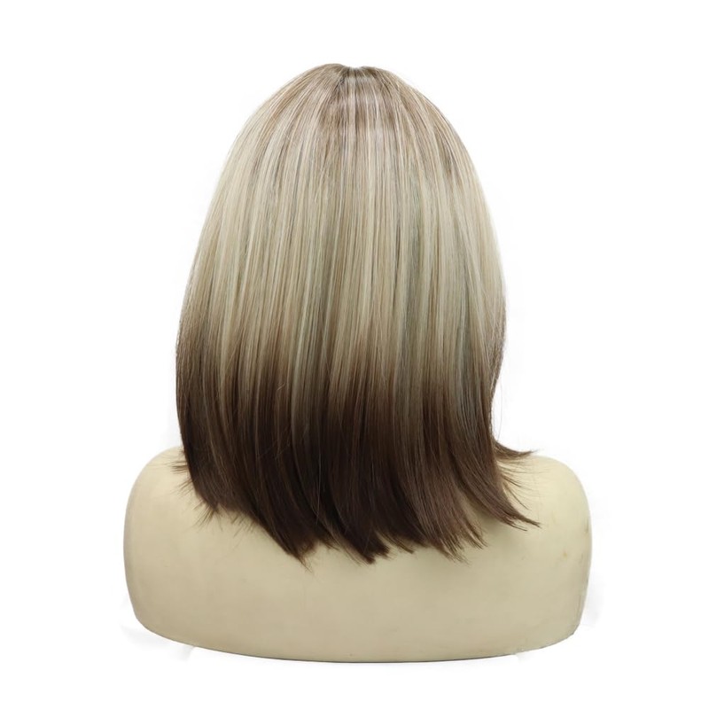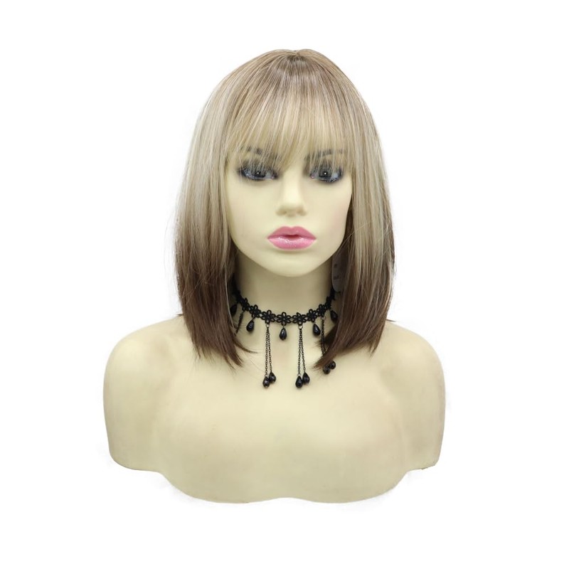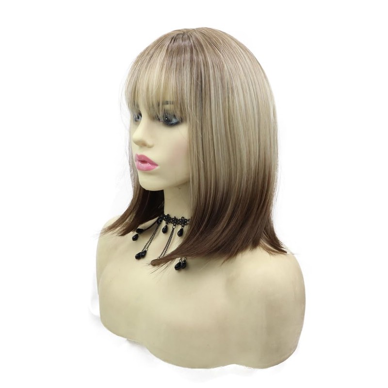 FRLWIGS Synthetic Wigs with Bangs Gradient Brown Straight Bob Without Lace Front Wig for Women High Temperature Fiber 14inches