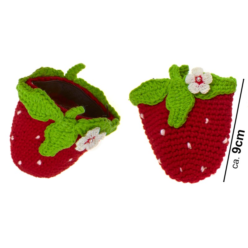 Frog Chicken Strawberry Cat Owl Coin Purse Very Quality Hand Crocheted with Zip for Young and Old, Strawberry wallet, Playful