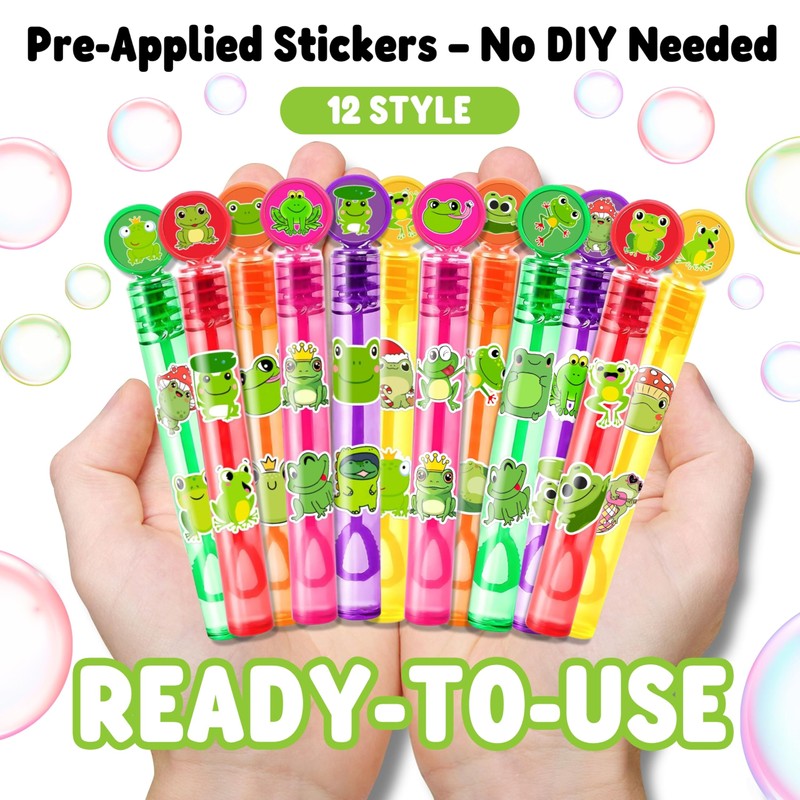- 🐸🎉 【FROG PARTY FAVORS】 – Hop into fun with this delightful set of 24 frog-themed bubble wands, featuring 12 charming amphibian-inspired designs and 96 pre-applied stickers. No prep needed – each wand comes fully decorated and ready to go. Just pop them open and let the bubbly fun begin! Perfect for boys’ and girls’ frog, pond, or nature-themed birthday parties.