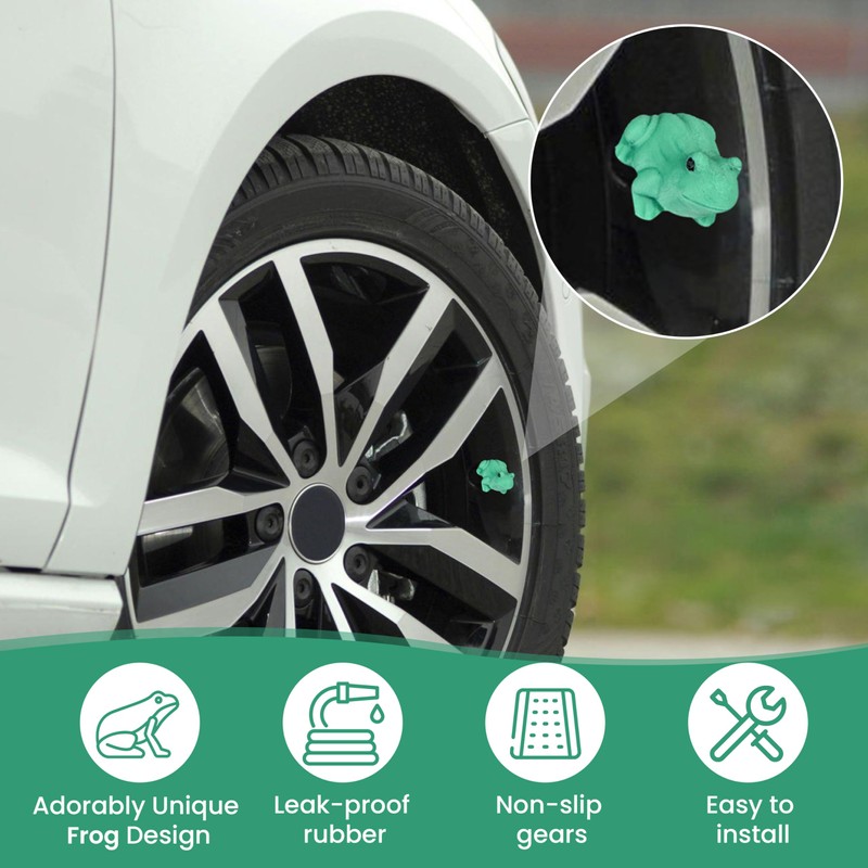 Frog/Toad Bust Tire Valve Stem Caps – Fun Wheel Decor – Set of 4 – Fits Standard Schrader Valve Stems