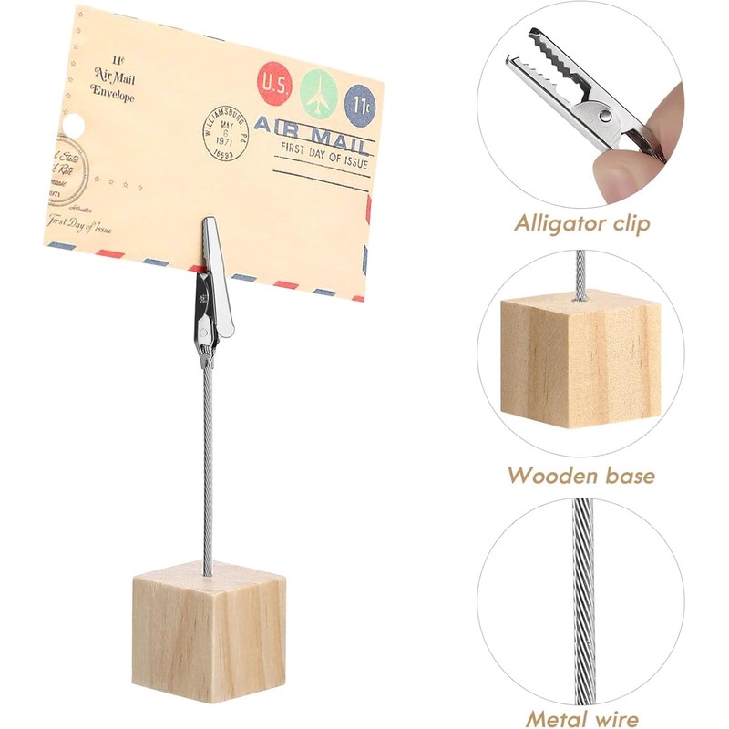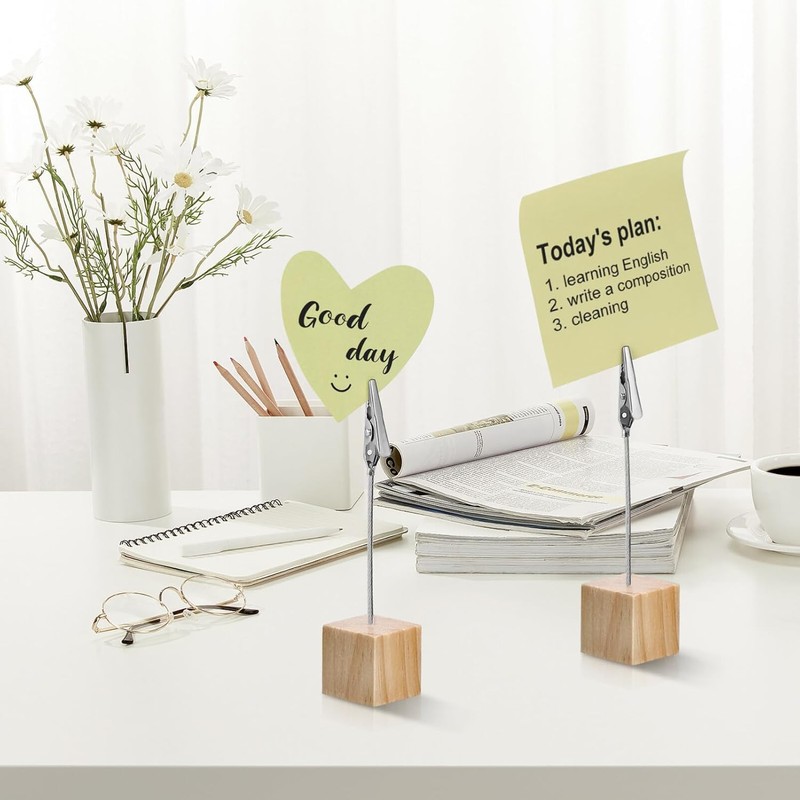 - Exquisite workmanship: card holder table is made of high-quality wood, the original pine structure is clear, well made and pays attention to details. The note holder base has been sterilised and deburred, with smooth edges, without burrs or sharp edges, safe and harmless. The crocodile clips are made of stainless steel, are strong and durable, and the jaws are stable and do not fall together.