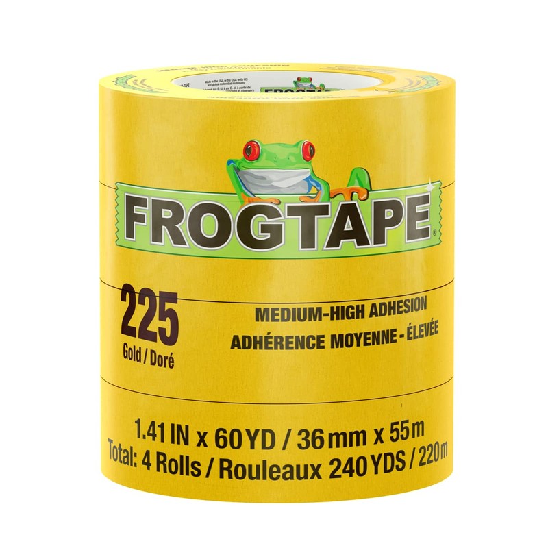 FROGTAPE 225 Gold Moderate Temperature Performance Grade Masking Tape, Medium-High Adhesion, 36mm x 55m, 4 Rolls per Pack (105321)
