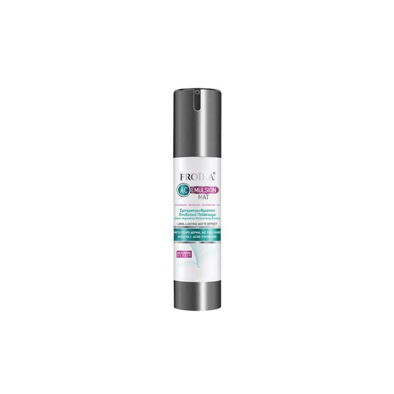 AC- EMULSION MAT is a facial moisturizer that provides a matte finish, neutralizing shine from the first application, ideal for oily, acne-prone skin. The special microspheres it contains effectively absorb excess sebum while the moisturizing agents restore the skin’s water balance.