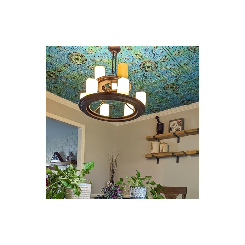 From Plain To Beautiful In Hours 511 Venice PVC 2' x 2' Lay-in or Glue-up Ceiling Tile (Covers / 40 sq.ft), Medieval Blue, 10 Piece