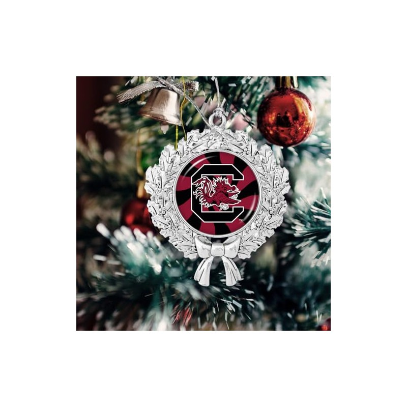 From the Heart South Carolina Wreath Ornament with Peppermint Swirl Team Logo Silver Metal Tree Decoration