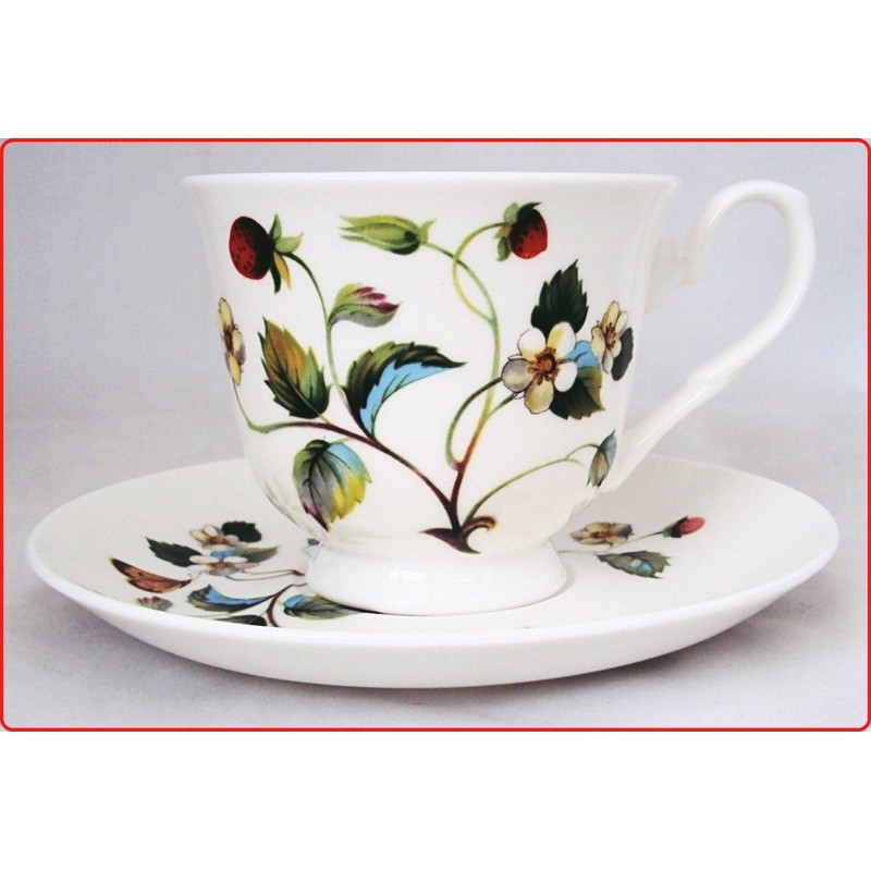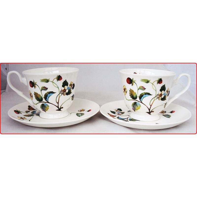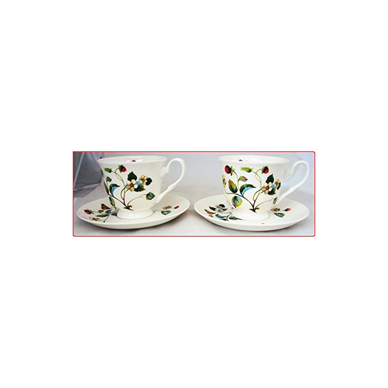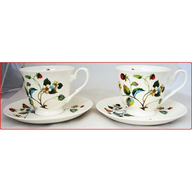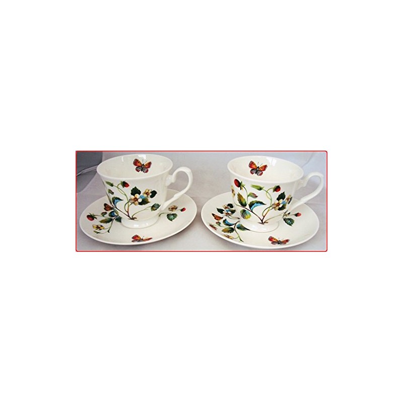 fromeuropewithlove Strawberries & Butterflies Cups and Saucers Set of 2 Fine Bone China Tea Coffee Cups & Saucers Hand Decorated in UK
