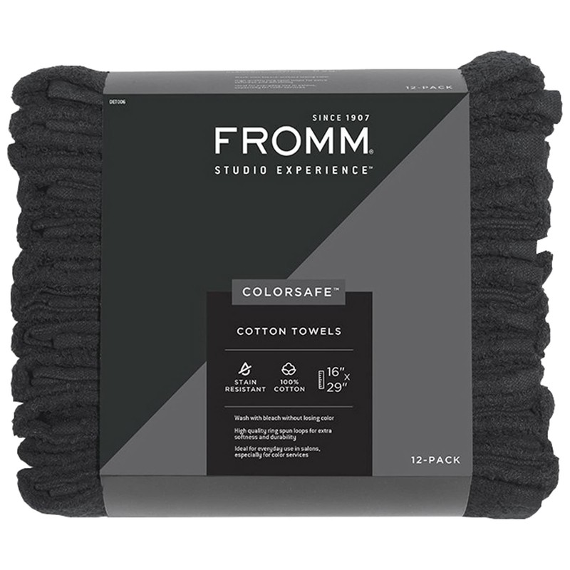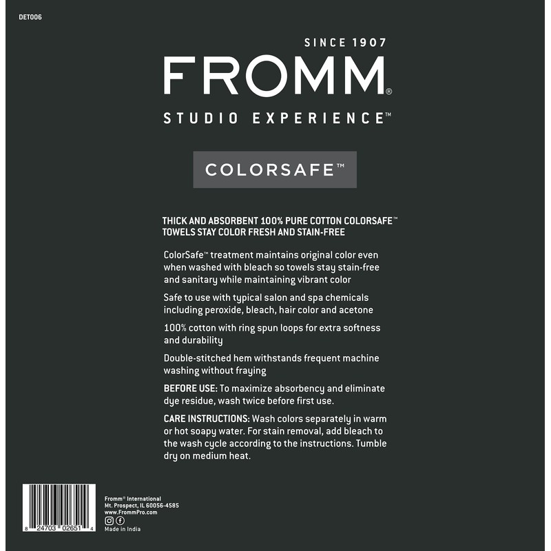 - PROFESSIONAL SALON TOWELS: Fromm ColorSafe Hair Towels are safe to use with typical salon and spa chemicals including peroxide, bleach, hair color and acetone; They are ideal to use in salons and barber shops for color services