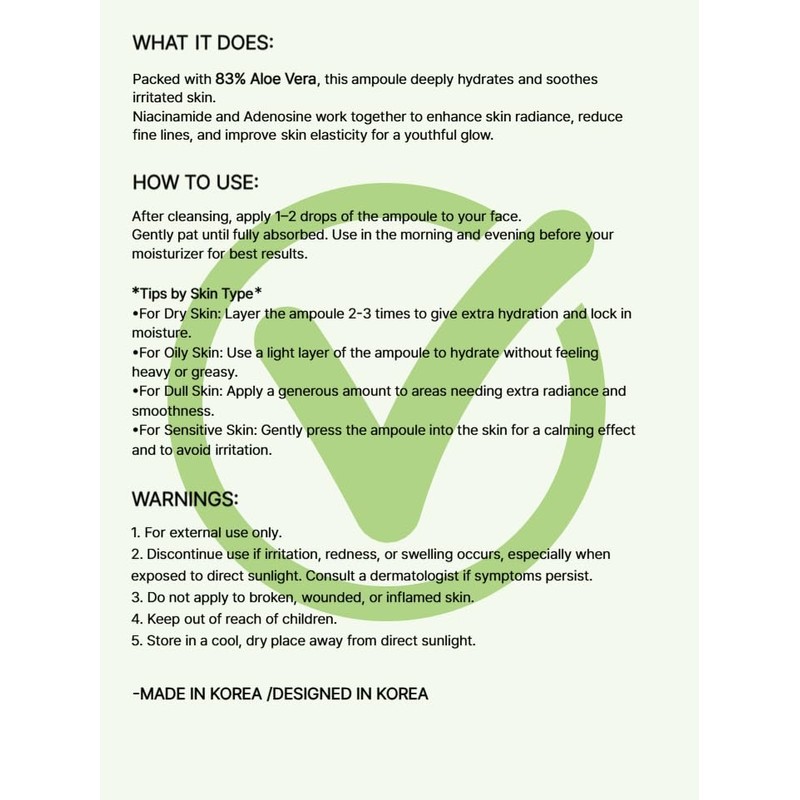 FROMNATURE ARLESHEIM Aloe Vera 83% Moisture Soothing Ampoule 50 ml – Hydrating& Calming Skin & Moisturizing with Hyaluronic Acid