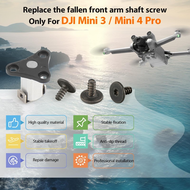 - Compatible With: The drone front arm axis replacement only for DJI Mini 4 Pro and Mini 3 (It is to replace front arm shaft hinge, please make sure the body position), not suits for other drone model. Please confirm the Mini 3 front arm axis is the correct model.(Complete accessories, no need to additional screws and tools)