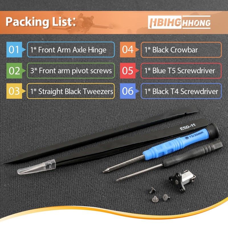 - 3Pcs Screws and Tools: The matching Front Arm Axis Screw size and thread design precisely match the for DJI Mini 4 Pro model, ensuring the accuracy and stability of the installation. The tools provided include screwdriver and tweezers, which help to make disassembly and installation more convenient and easier.