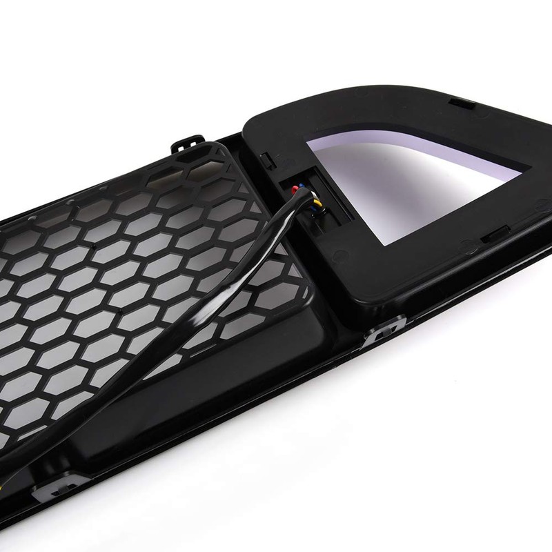 * 1.Bright white daytime running lights(DRL) with amber switchback functionality. * 2\. Protects your vehicle from trail debris and stones, Allow air to pass by and keep the engine running cool * 3.Made of best injection molded ABS plastic with light weight and durability * 4\. Easy to install , No cutting required, direct fit replacement grille
