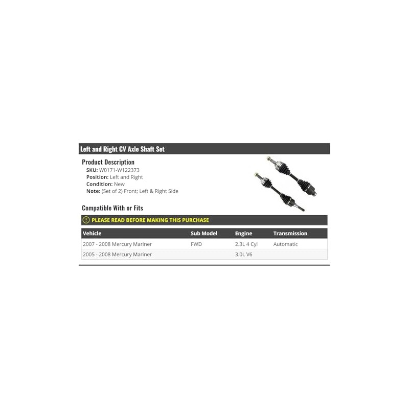 Front CV Axle Shaft Set of 2 - Compatible with 2005-2008 Mercury Mariner FWD