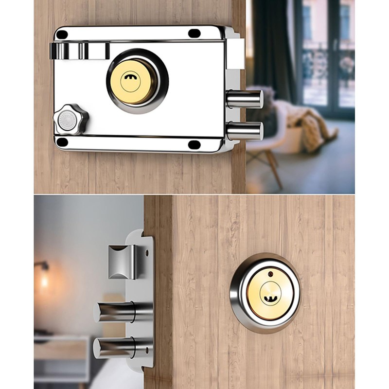 - High Security: Deadbolt rim lock set, This rim lock set comes with five keys, featuring intricate grooves, creating low rates of pickability, thus, heightening resistance against technical unlocking methods.