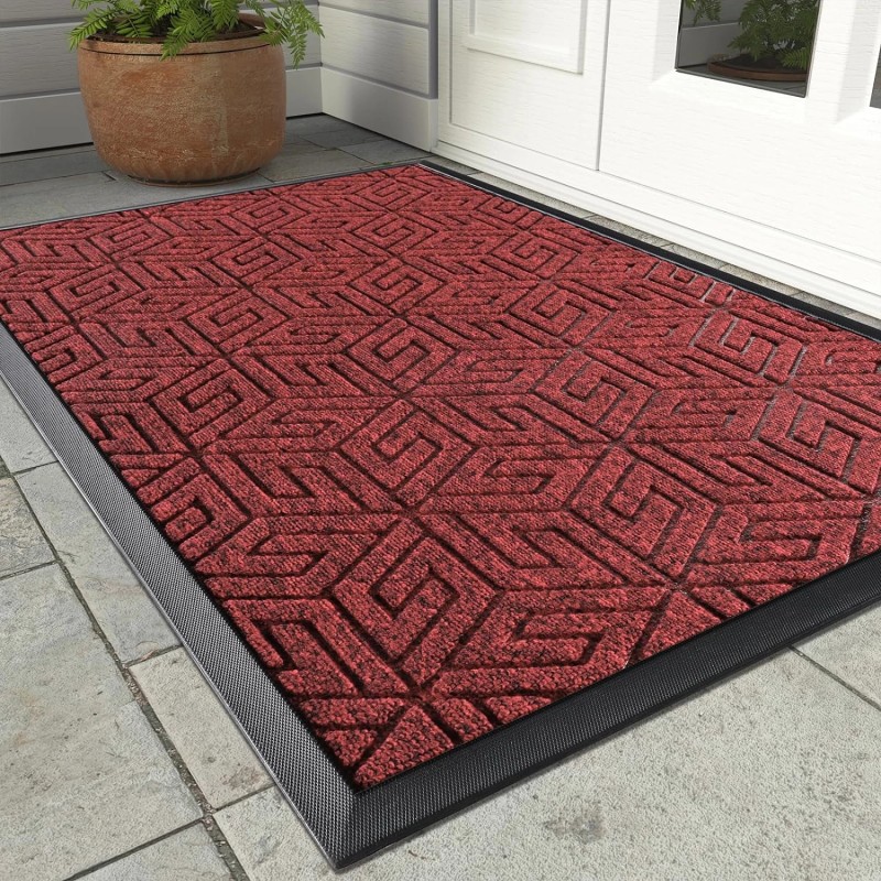 - 【Capture Dirt and Moisture】Yimobra front door mat fits all season and all weather, it features with patterned groove design that provide a good catcher for sand/ debris/ dust from bare feet and shoe/ sandel/ boot soles. The beveled border design helps to form a retention dam to catches everything the dogs bring in including muddy, wet feet