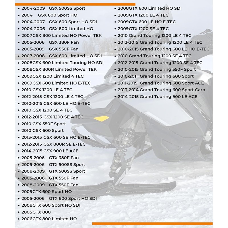 - [FITMENTS] This front end ski leg repair kit fits for 2003-2015 Ski-Doo, fits for Ski-Doo GSX GTX MXZ Summit Grand Touring Renegade models. More fitment details can be checked in the product descriptions.