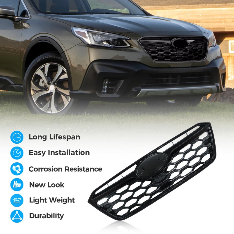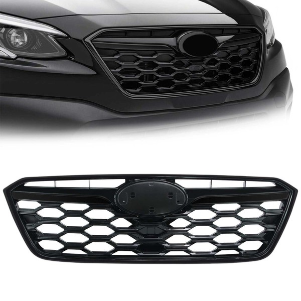 Front Grille Assembly Compatible for 2020 2021 2022 Subaru Outback, Gloss Black Automotive Honeycomb Grille Front Bumper Upper Grill Guard Replacement J1010AN000
