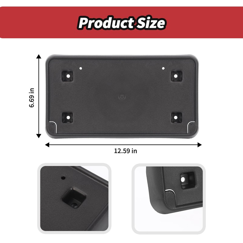 - √ Premium Material -- This front license plate bracket is made of high-quality and durable ABS material, has good stability and strength, anti-impact, is weather resistant, and does not rust.