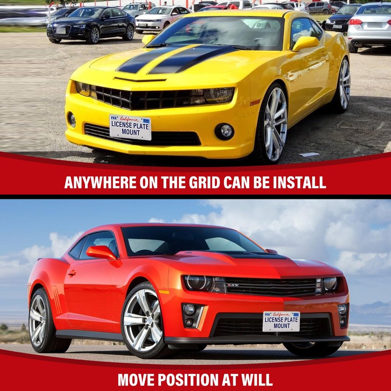 - ANY POSITION: This no drill front license plate bracket can be mounted on the front grill of your car in any position you want, no drilling is required, which can perfectly protect your car from being damaged