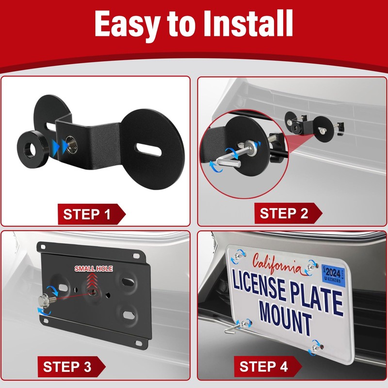 - Installation and removal: put the tow hook license plate mount through the grill of the car, put the screws through the corresponding holes and tighten it with a tool. To disassemble, just loosen the screws with the tools included in the package