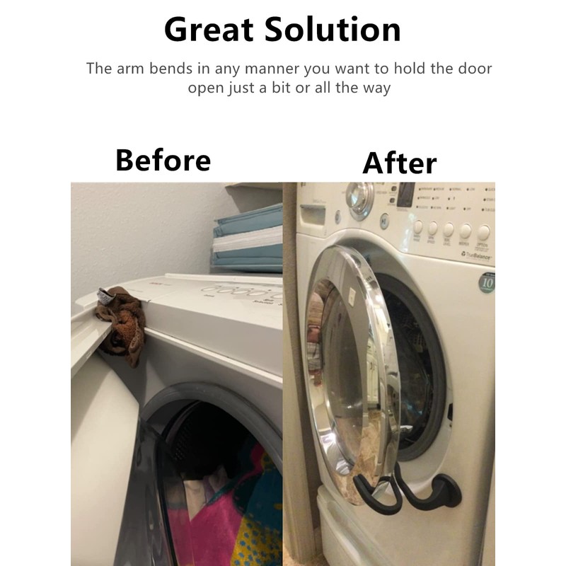 - Easy to Use: 1. attach the magnetic base to the inside door frame of washer; 2. shape the hose to hold the washer door; 3. detach the door holder after use.