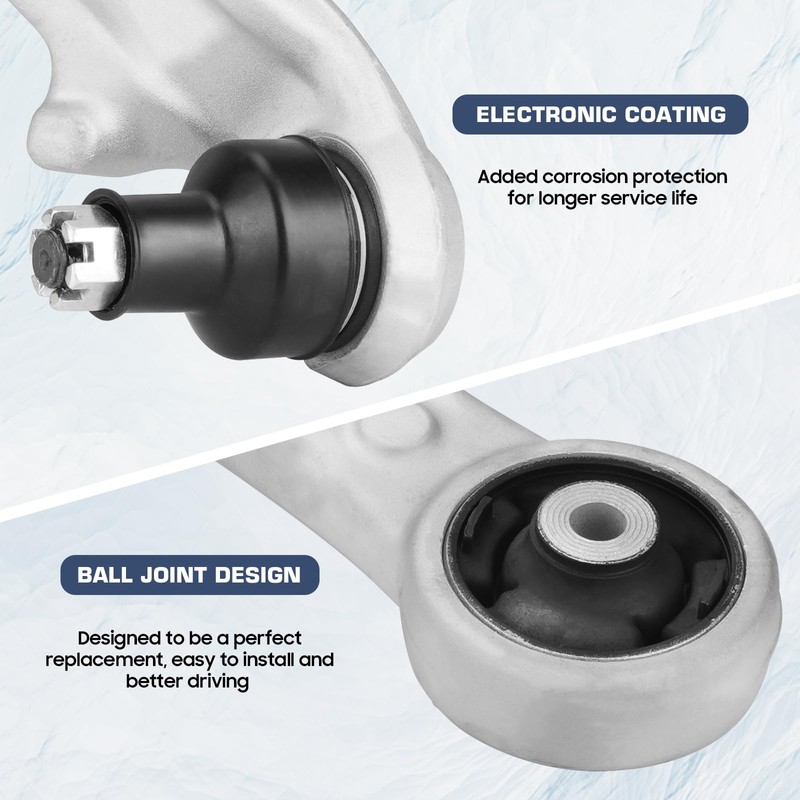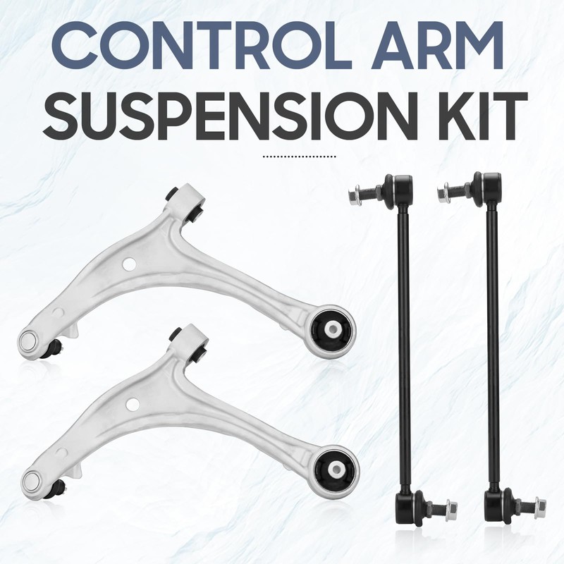 - Kit Includes : 1x Front Lower Control Arm w/ Ball Joint (Driver Side), 1x Front Lower Control Arm w/ Ball Joint (Passenger Side), 2x Front Sway Bar Link End.
