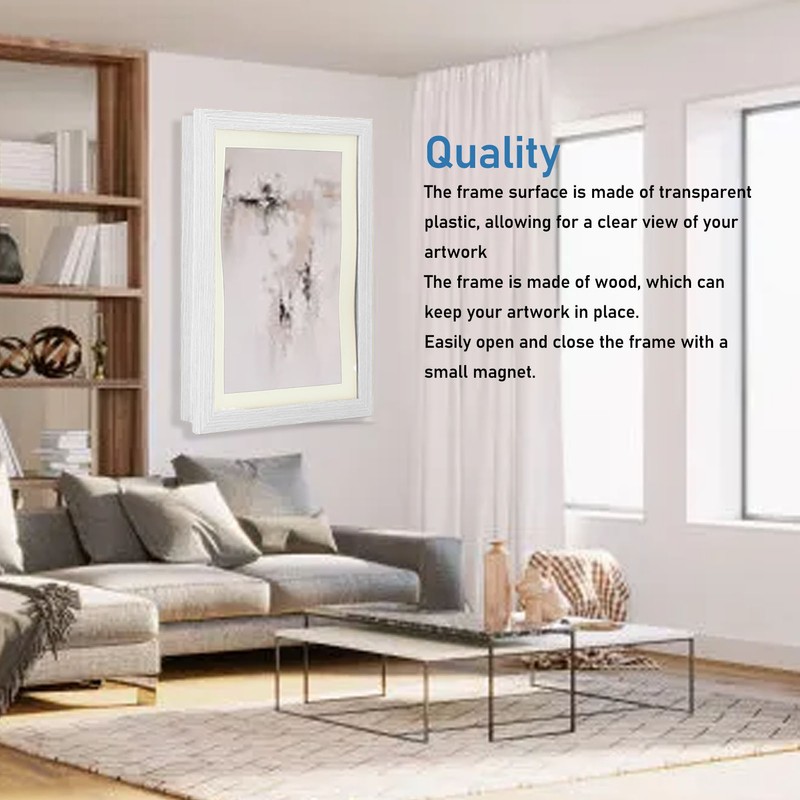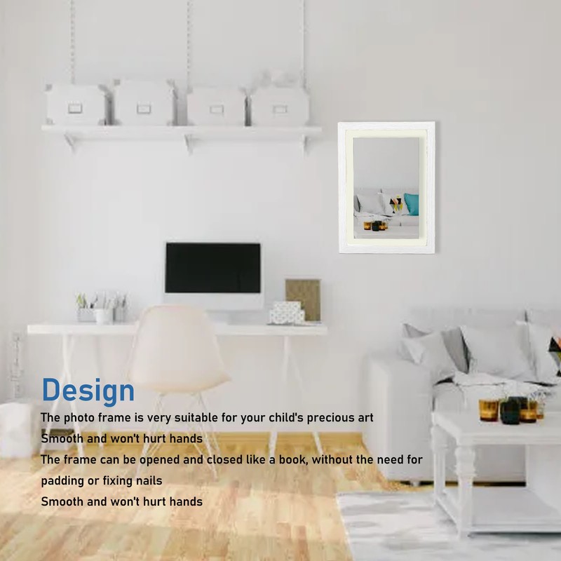 1、Kids Art Frame Size: The outer border of each frame is approximately 33x24cm, which is auitable for artwork of A4 or smaller sizes within 30x21cm. It has large capacity, 2cm depth, can accommodate approximately 50 artworks. 2、Plastic and Wood Material: The frame surface is made of transparent plastic, allowing for a clear view of your artwork. The frame is made of wood, which can keep your artwork in place. Easily open and close the frame with a small magnet. 3、Special Design: The kids art frame is perfect for your child's precious artwork. The frame can be opened and closed like a book, without the need for padding or fixing nails, smooth, and won't hurt hands. 4、Two Types of Back Hanging: Kids artwork display frame can be hung horizontally or vertically. You can use it to display artworks or store old artworks. 5、Wide Applications: You deserve to have a kids artwork frame to showcase pictures, 2D and 3D artworks, images, files, certificates, and photos. Just hang it on the wall and immediately display artwork and multiple images.