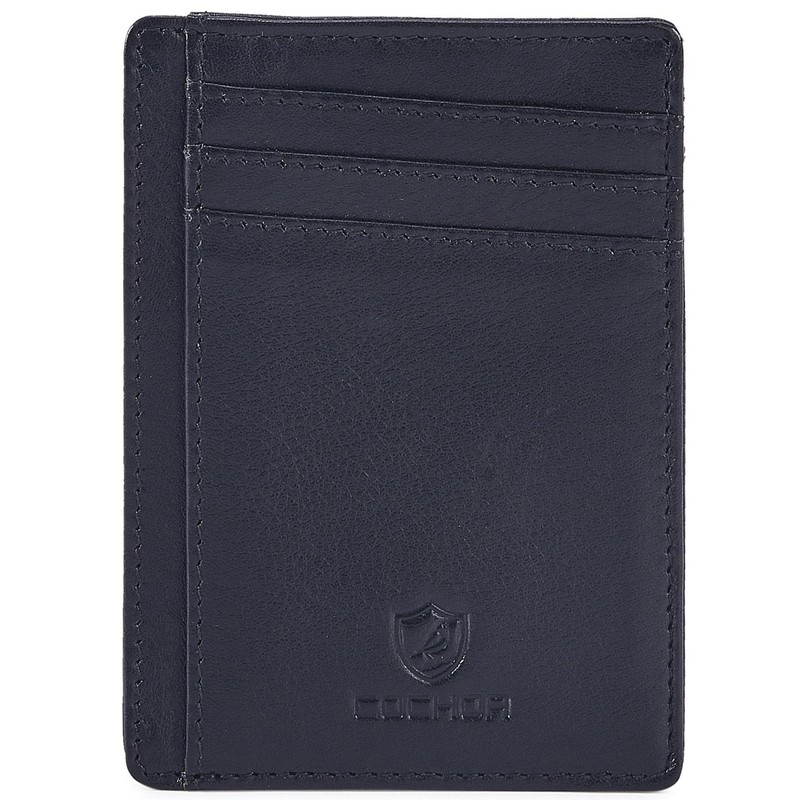 Front Pocket Wallet for Men Women Slim Minimalist Real Leather RFID Blocking Credit Card Holder (BLACK NAPPA)