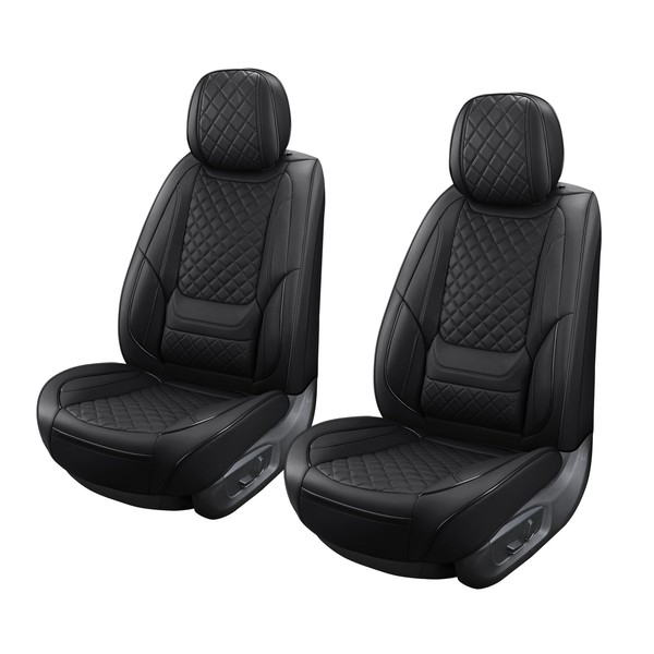 Front Seat Covers for Cars Breathable Leather Seat Covers Waterproof Seat Protectors Universal Fit for Most Automotive Cars SUV Trucks Van (Black, Front Pair)